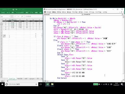 この動画を閲覧するには、「実践添削事例-パソコンスクールのシフト表・予約フォーム生成マクロ」をご購入ください。