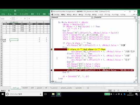 この動画を閲覧するには、「実践添削事例-パソコンスクールのシフト表・予約フォーム生成マクロ」をご購入ください。