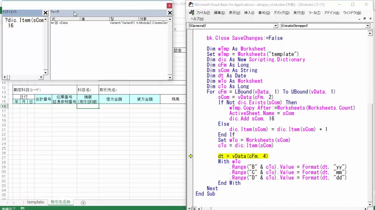 発展編1で演習した「伝票作成マクロ」を、配列にエクセルシート上のデータを格納してから処理するという方法で解きます。
