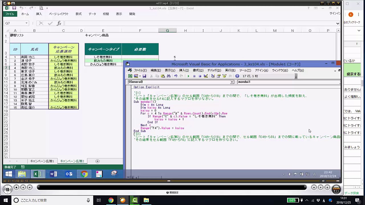 この動画を閲覧するには、「エクセル・エクセルマクロ動画添削2」をご購入ください。