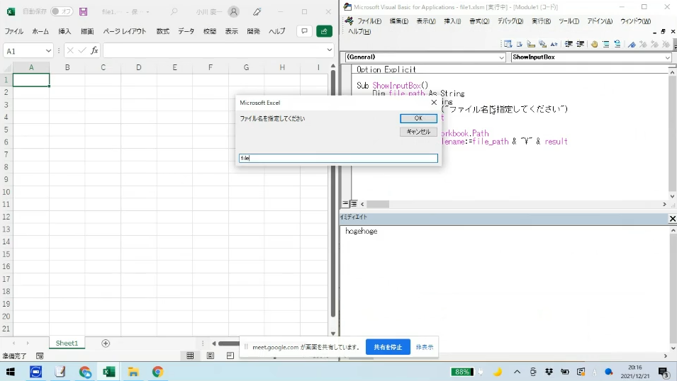 ダイアログボックスを用いた別ファイルを開くマクロのエラー回避処理(Inputbox)