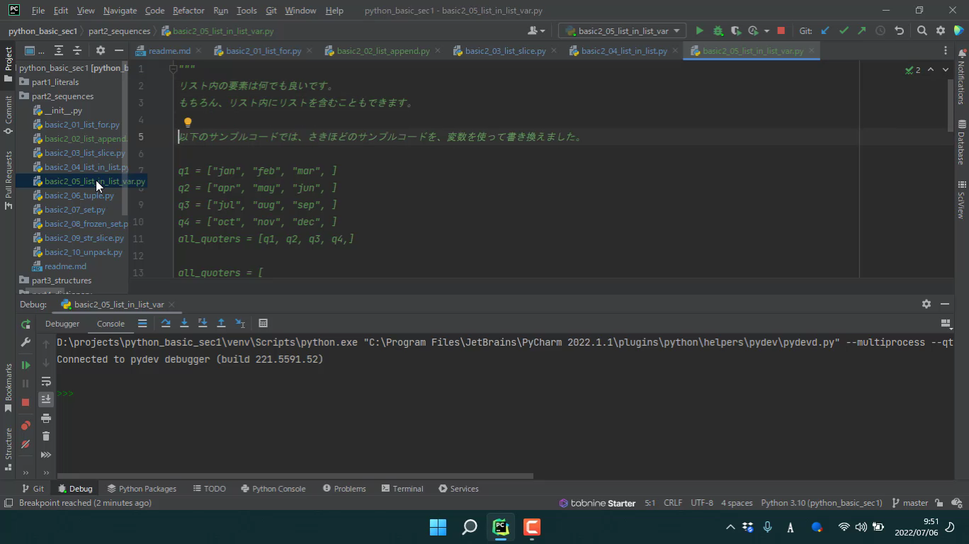 前回にひきつづき、「リストの要素がリスト」という例を紹介します。