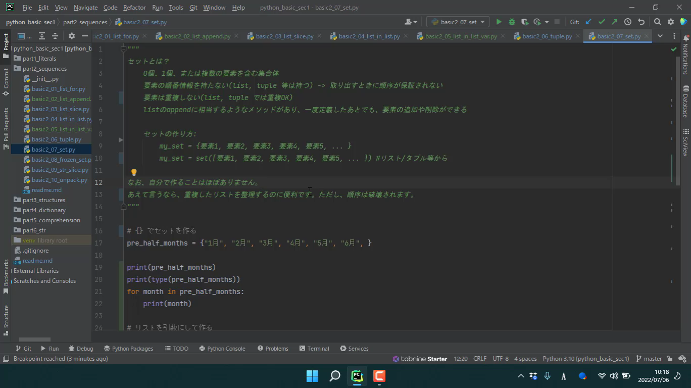 セットについて学びます。