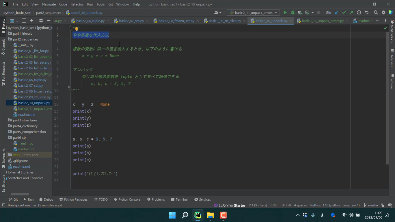 やや高度な変数への代入方法について学びます。