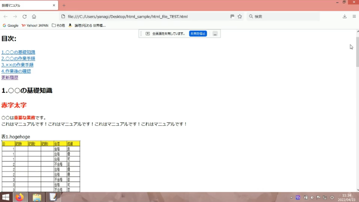 受講生さん自身によるhtmlファイルでのマニュアル作成