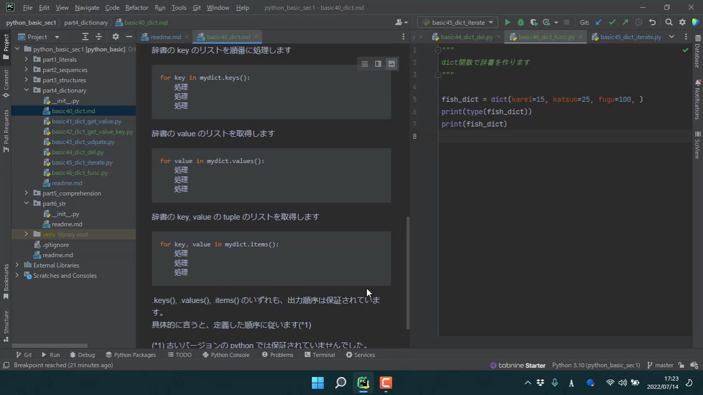 dict関数で辞書を作る方法について学びます。