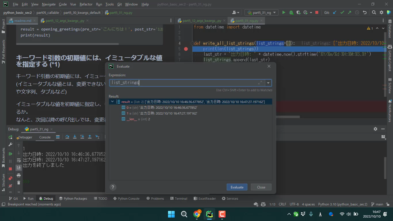 キーワード引数の初期値は、イミュータブルでないといけません。