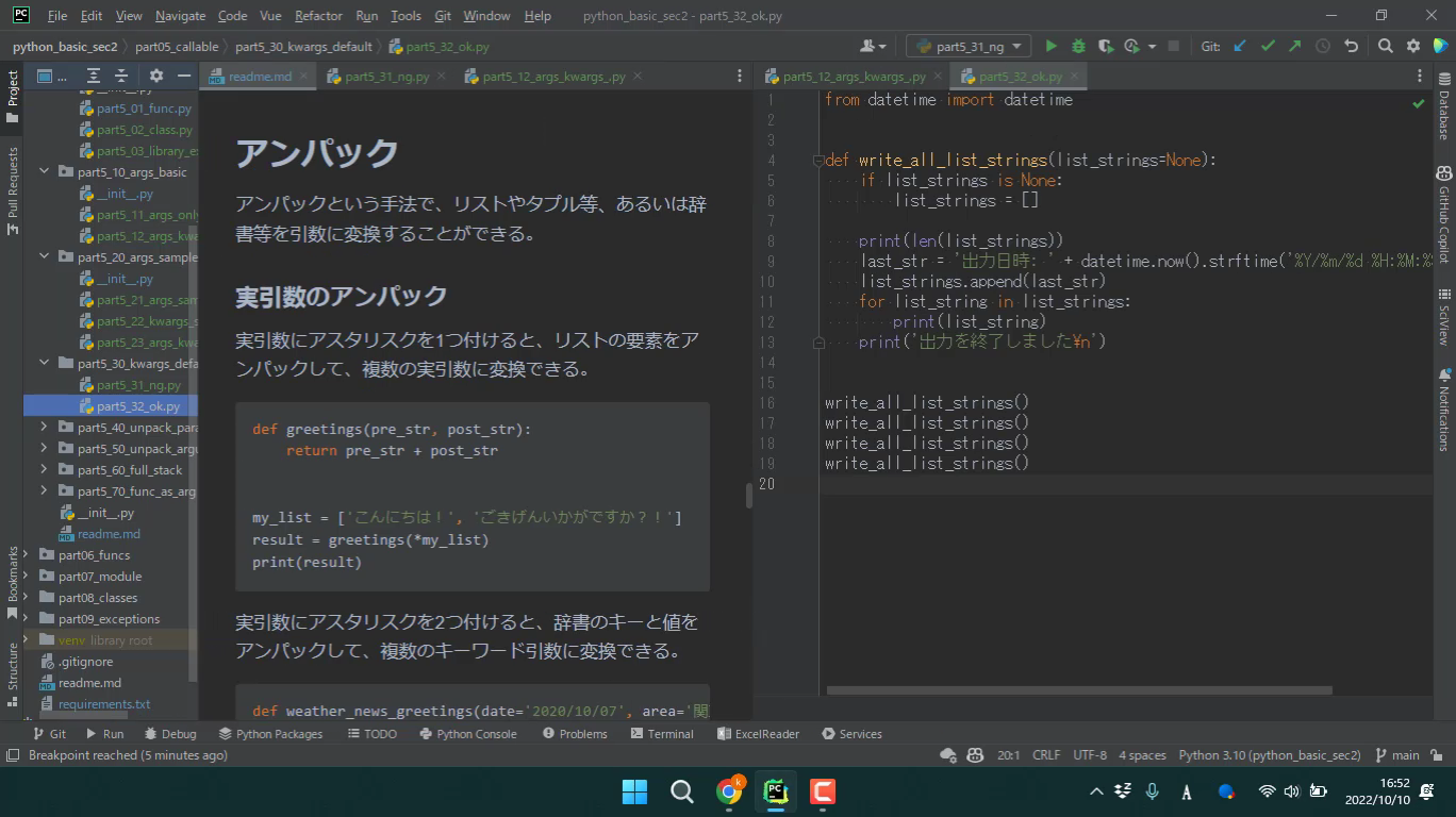 実引数の位置引数、キーワード引数のアンパック方法について解説します。