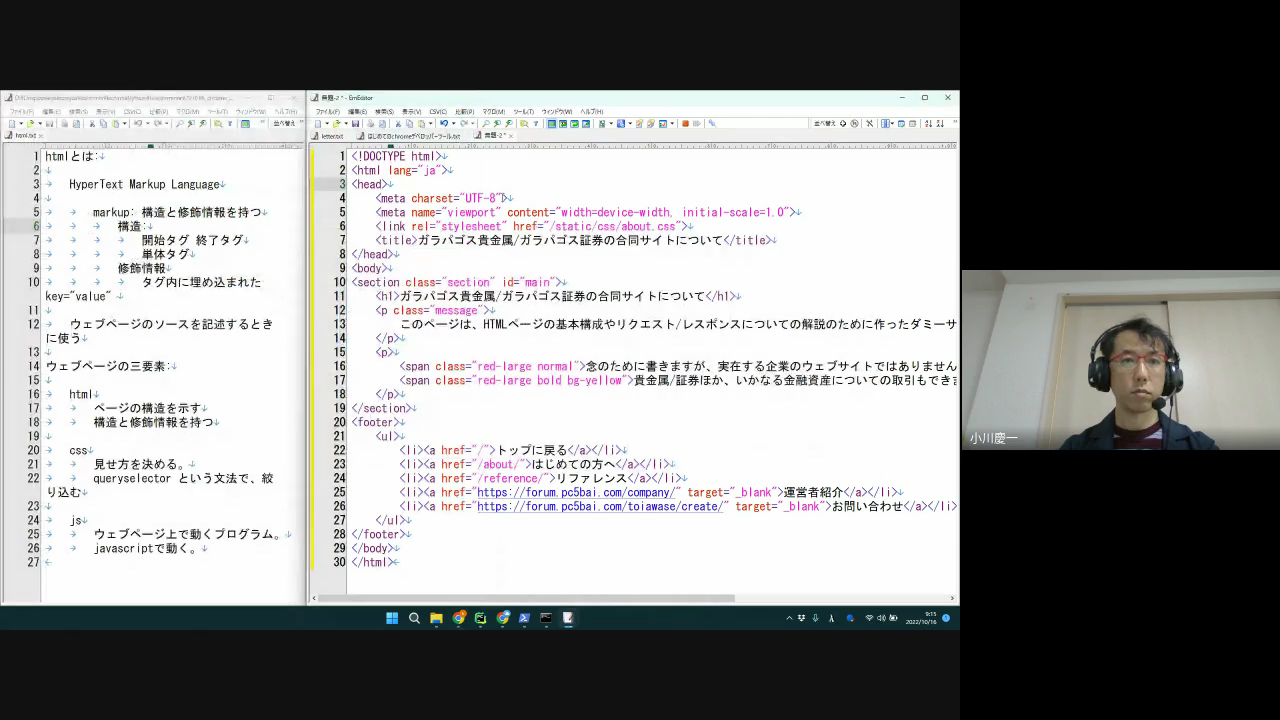 htmlファイル、cssファイル、jsファイルが主な登場人物です。