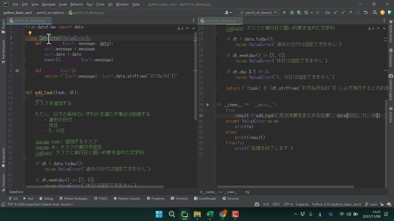 クラス、例外に慣れつつ、くりかえし学んでください。