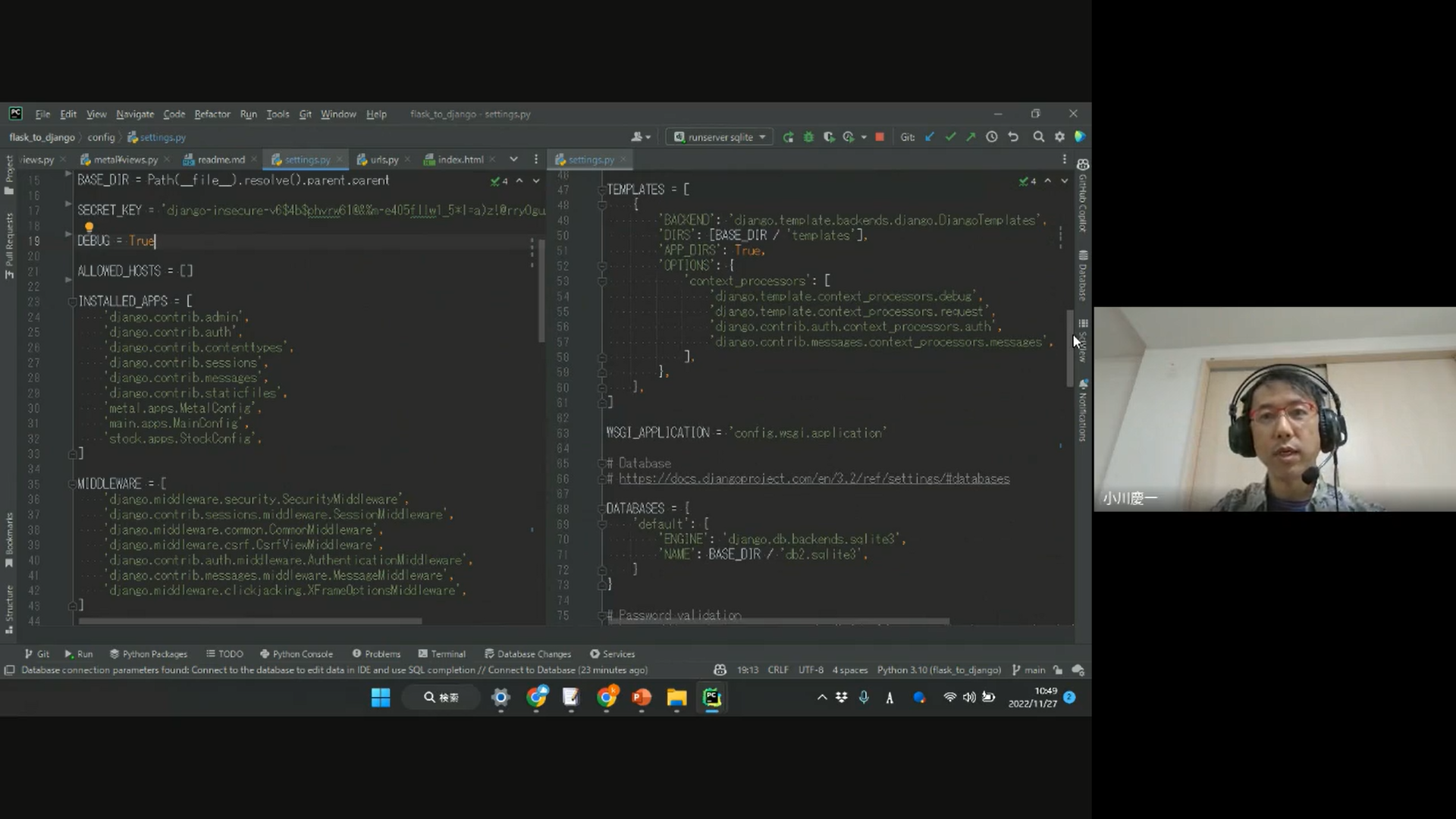 221127_07 settings.py を各自で読んでみる - 演習