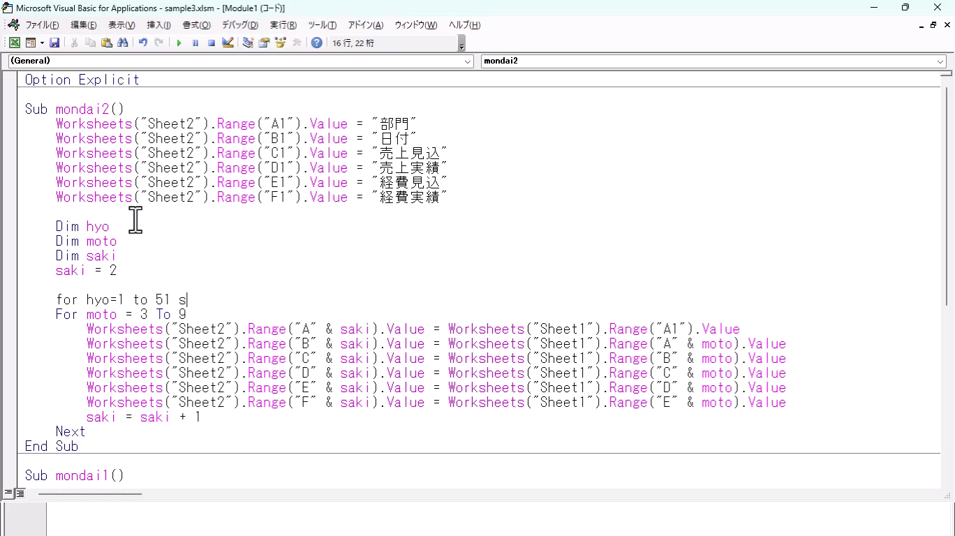 1つのシートに縦に出力された複数レポートを統合して別シートに転記する(その2)