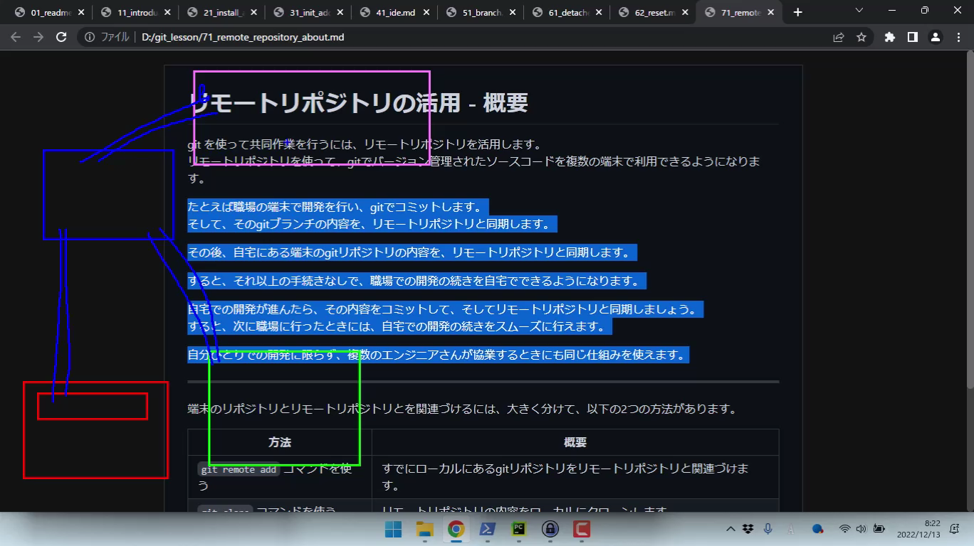 リモートリポジトリを使って、gitでバージョン管理されたソースコードを複数の端末で利用できるようになります。