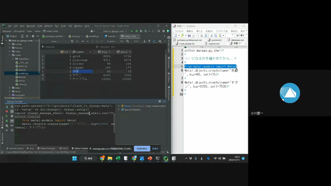 221211_11 Pycharm の Python Console から Django のオブジェクトを操作してみる