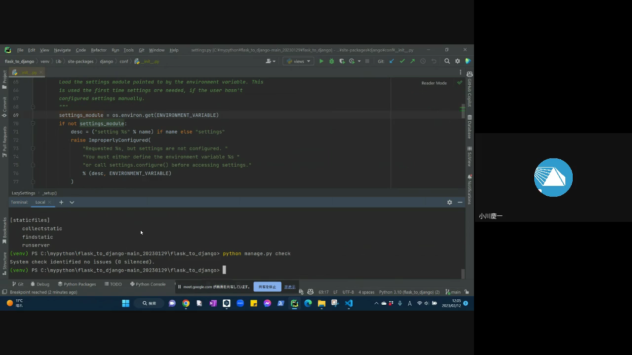 結論から書くと、 views.py を直接実行しようとしていることが原因でした。