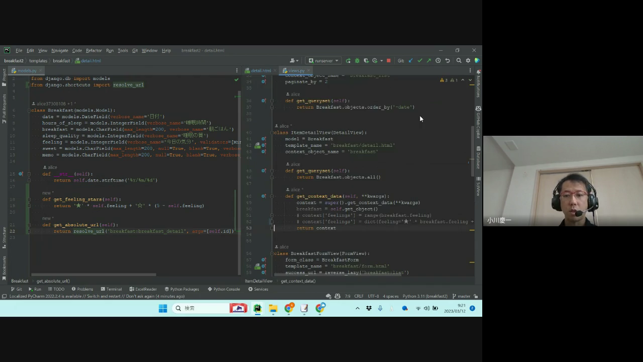 aliceさんはget_context_data で生成される辞書に追加する方法で実装されていましたが、ここでは、 model のメソッドとして実装する方法を紹介しています。