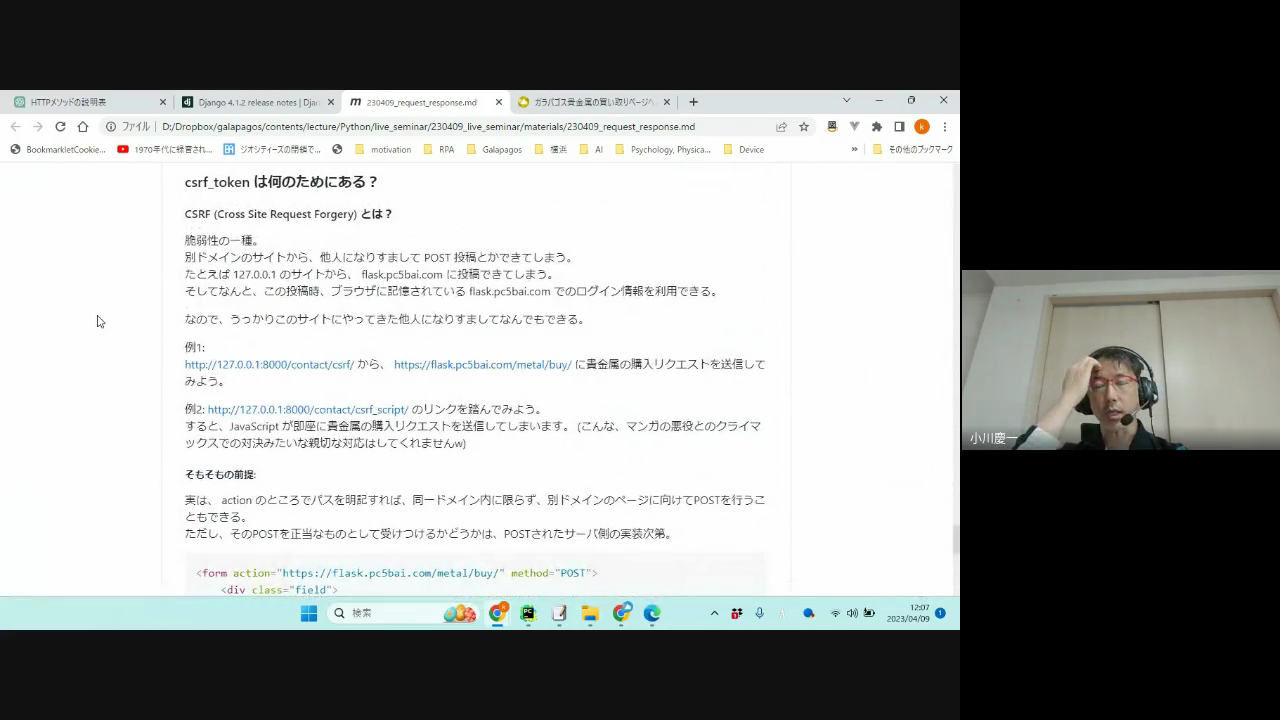 そのうえで、 Django に標準的に実装されている CSRF 対策の仕組みについて説明します。
