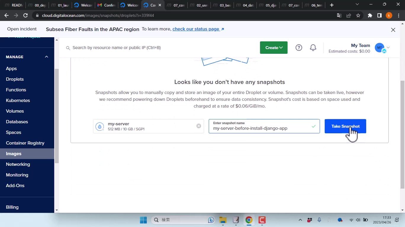 左の Manage メニュー内の Images からバックアップを作成できます。