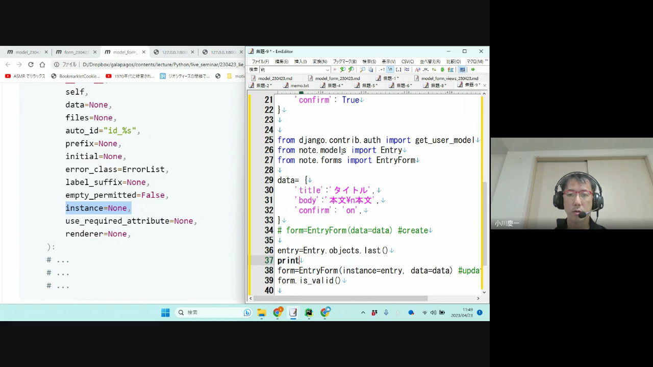 CreateView クラス, UpdateView クラスについて学びますが、これらよりより原始的とも言える FormView クラス, View クラスを使った場合の実装と比較することで、より実装が見えるかと思います。