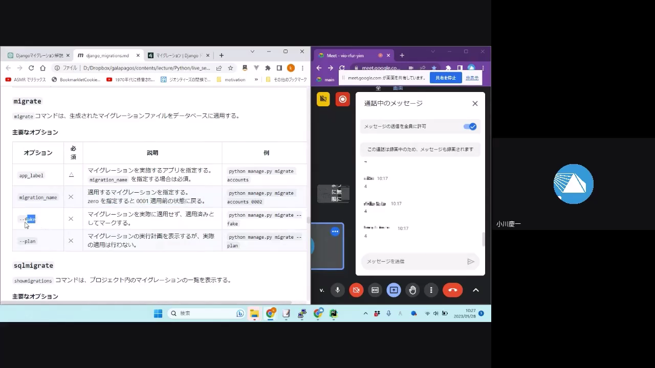 230528_05_Djangoでのマイグレーションの基本の流れとコマンドのオプション