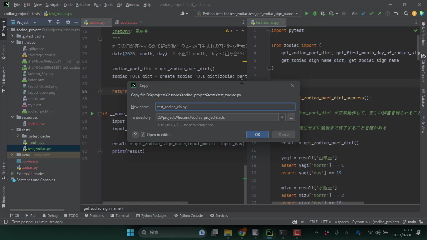 星座判定プログラムのテストコードを、pytestのクラス、 unittest.TestCase のクラスで書いていきます。