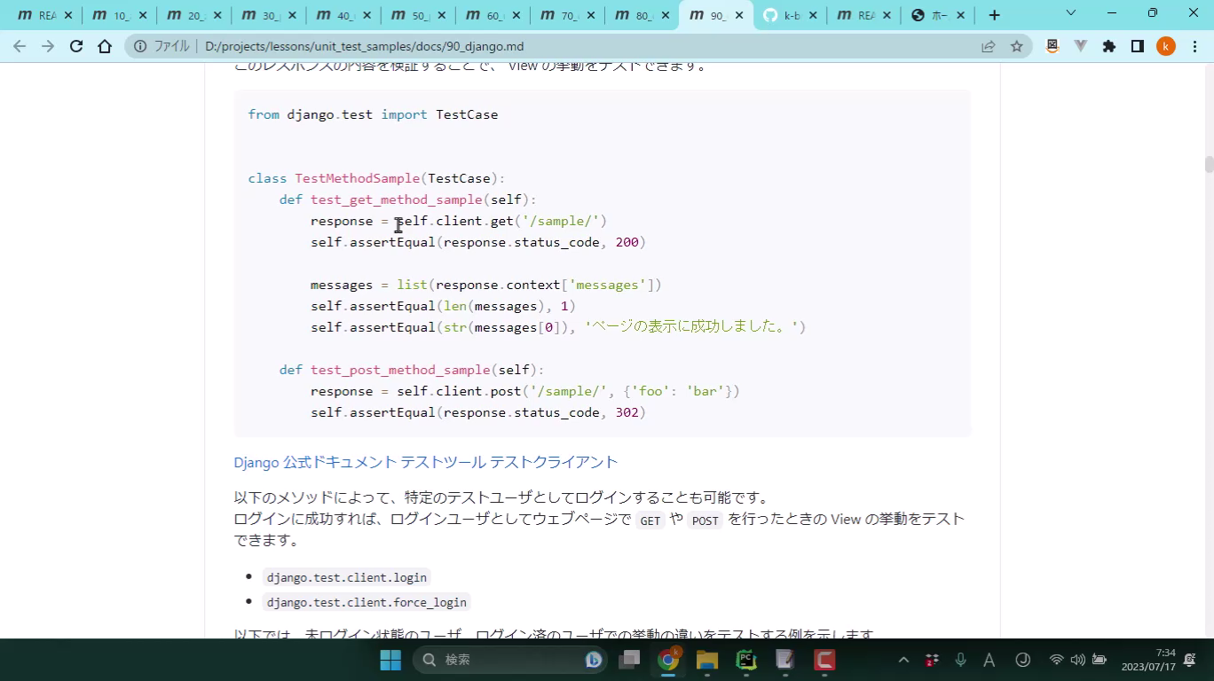 Djangoでのユニットテスト-テストクライアント編