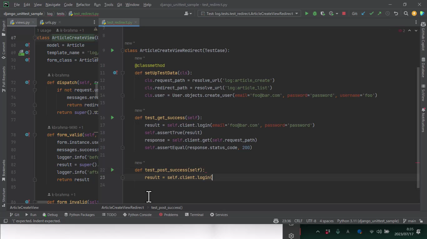 Djangoでのユニットテスト-テストクライアントでの follow=True オプション