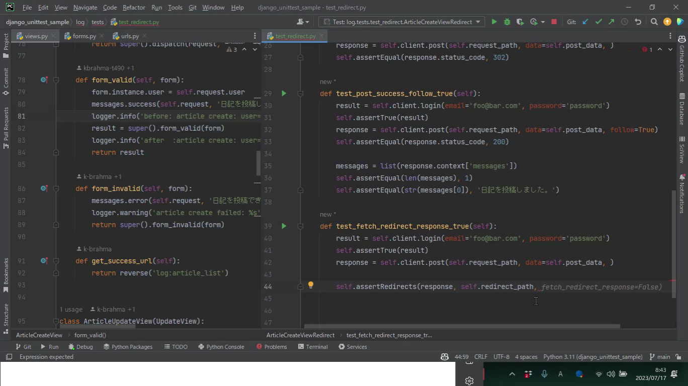 Djangoでのユニットテスト-assertRedirectsメソッドの挙動