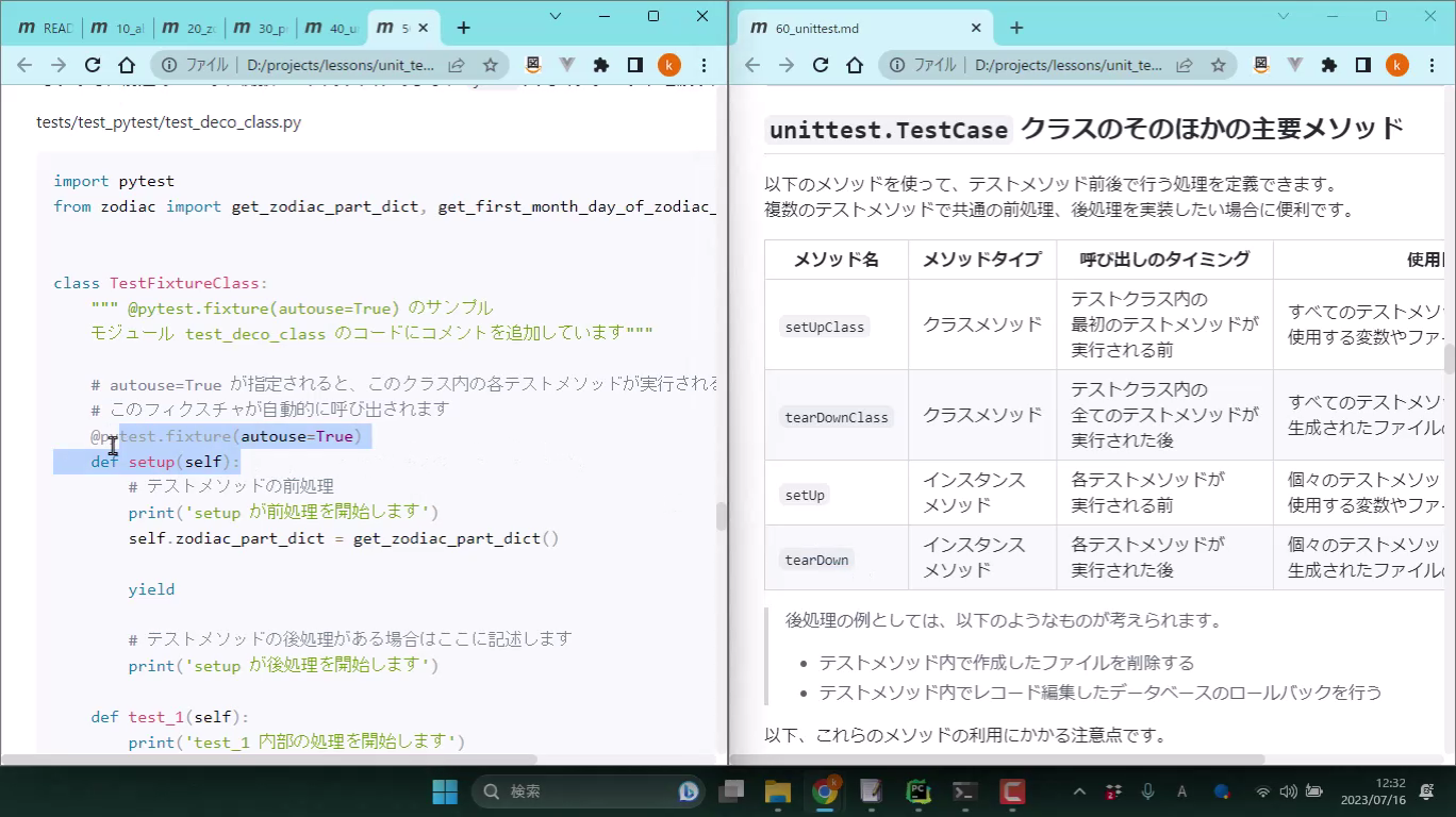 pytest の pytest.fixture デコレータについて。