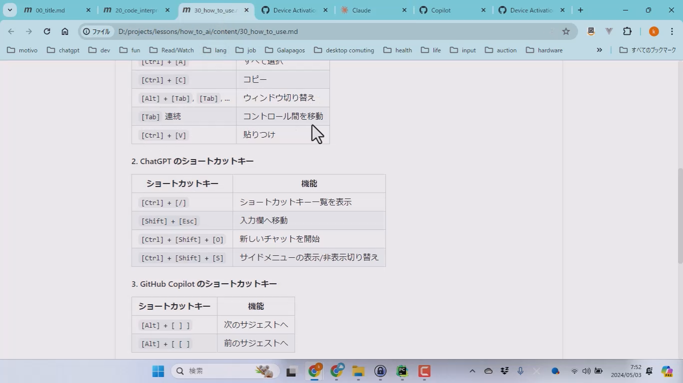 - AI 利用時に限らずどのようなシーンでも便利な汎用ショートカットキー