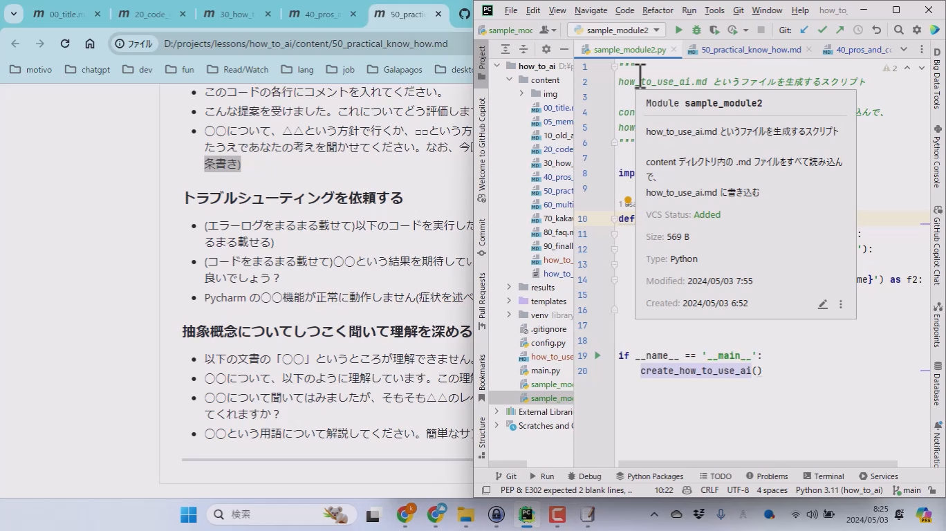 その内容を踏まえたうえで、さらに、「上手に学習するための、AIへの相談のしかたのコツ」をまとめました。