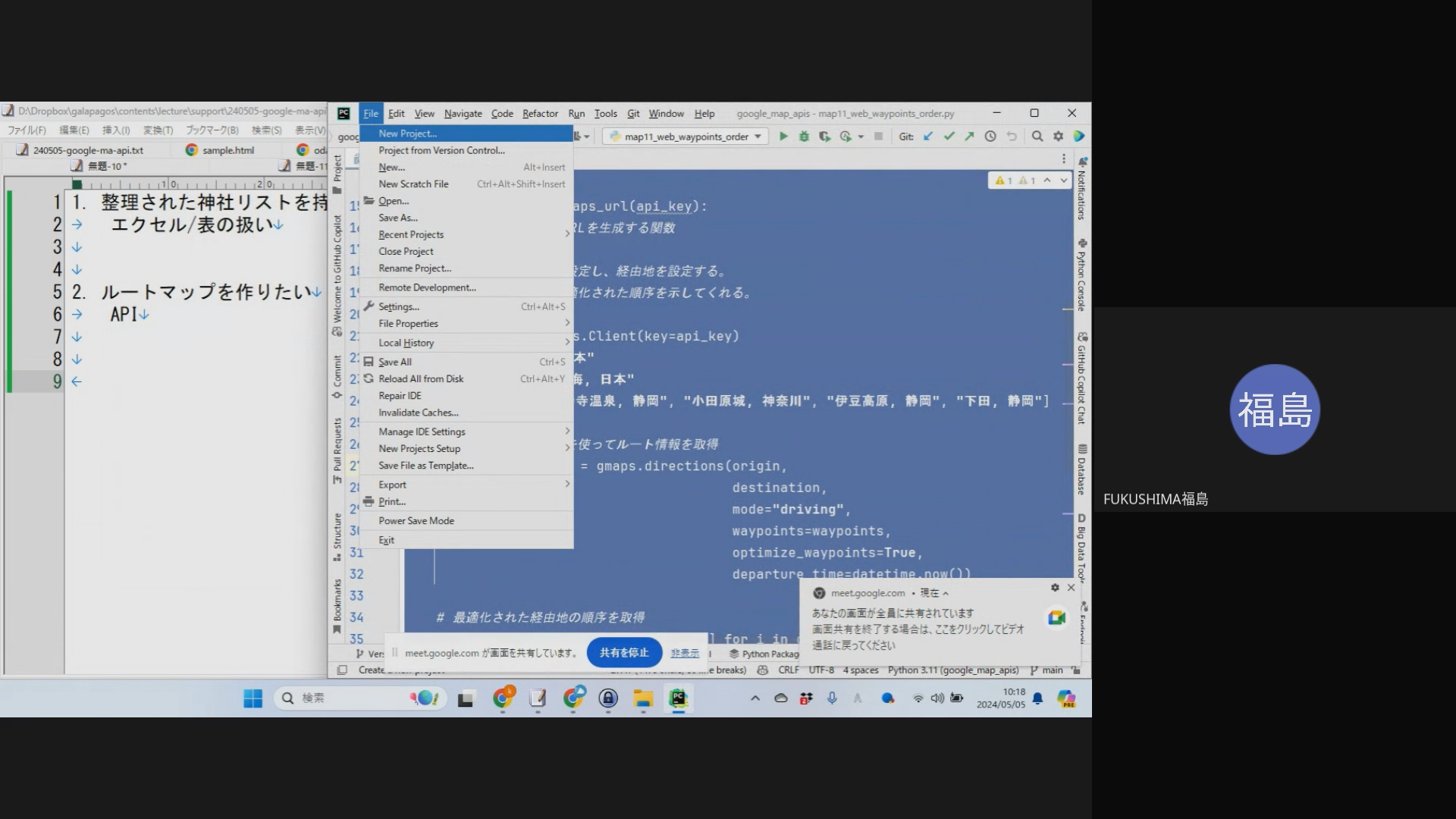 そして、その内容を Google Map で表示させます。