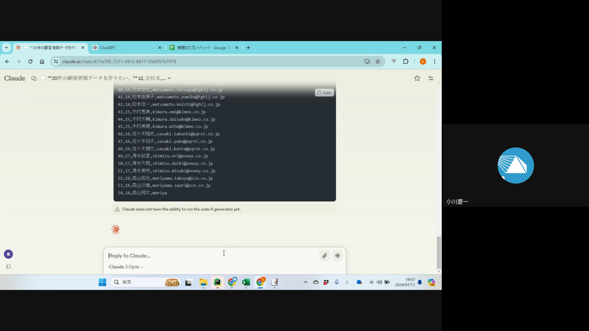 生成AIを使ったサンプルデータの生成の様子のデモです。こういうことをさらっとできるようになりたいですね。
