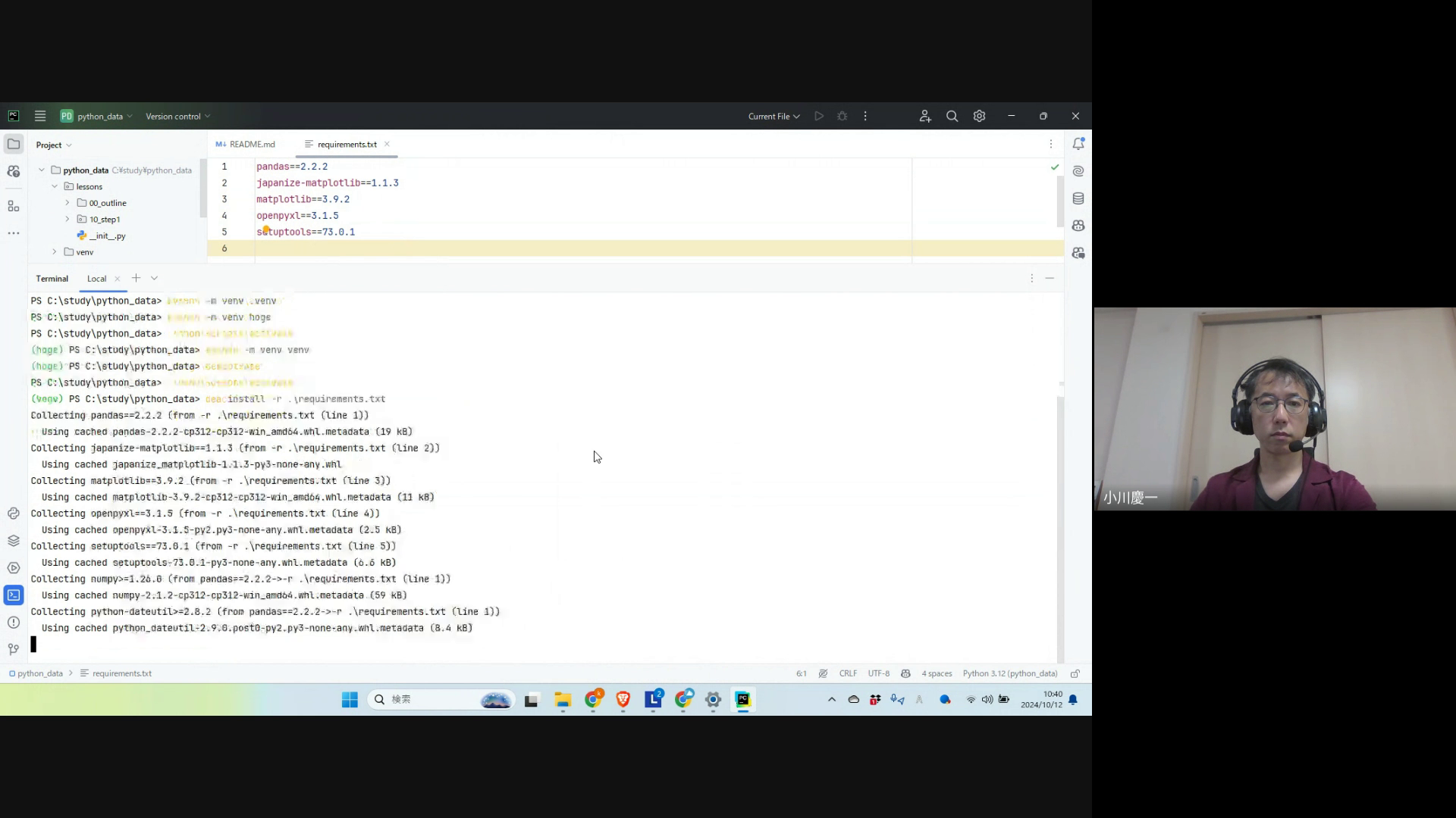 241012-03-仮想環境を設定を作り pip install する