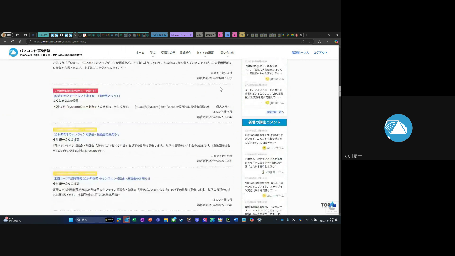 Pythonデータ分析ゼミの掲示板への導線確認