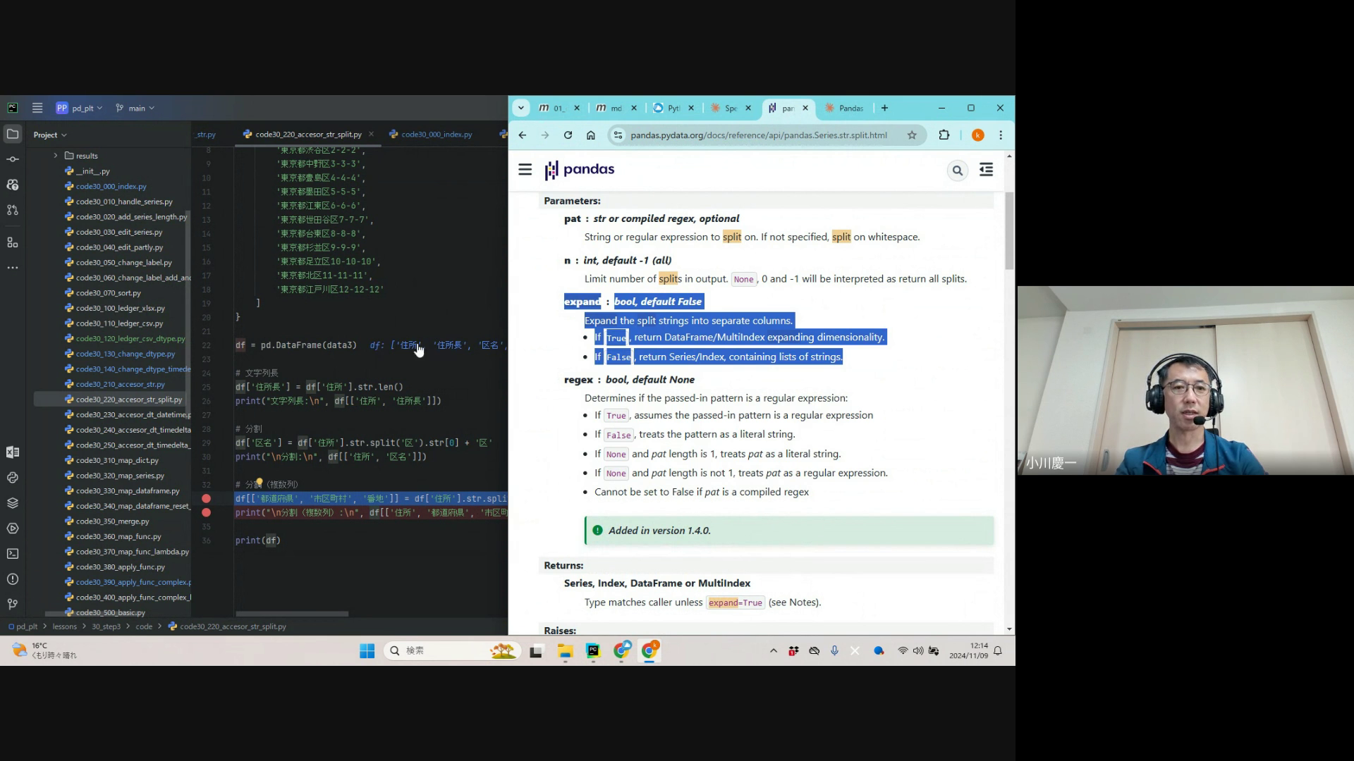 st.split の expand 引数についても質問を受けました。ソースコードを見たり、pandasの公式ドキュメントを見たりして確認してみました。