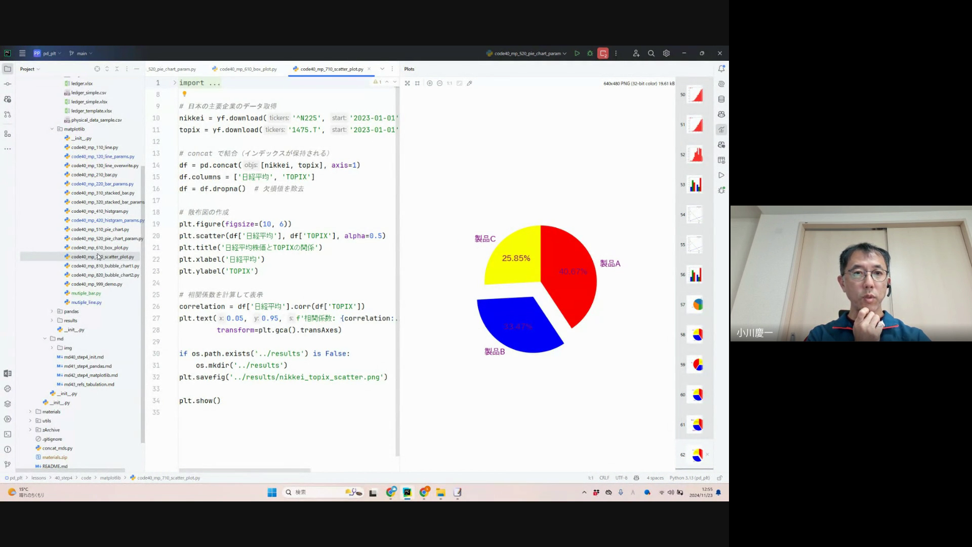 また、matplotlibを使ったグラフの例の紹介をしています。