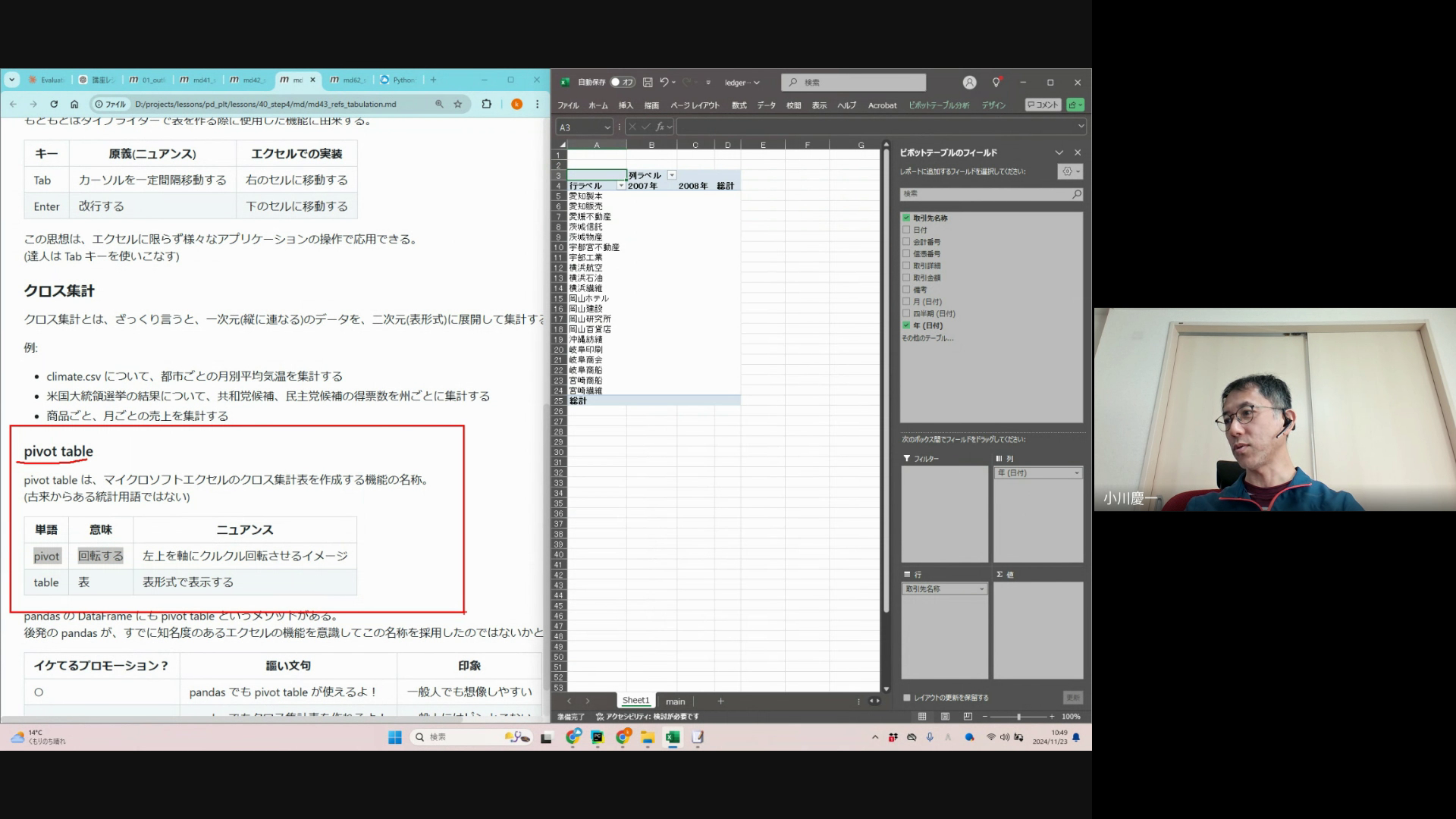 また、エクセルの人気機能ピボットテーブルついてもお話しています。