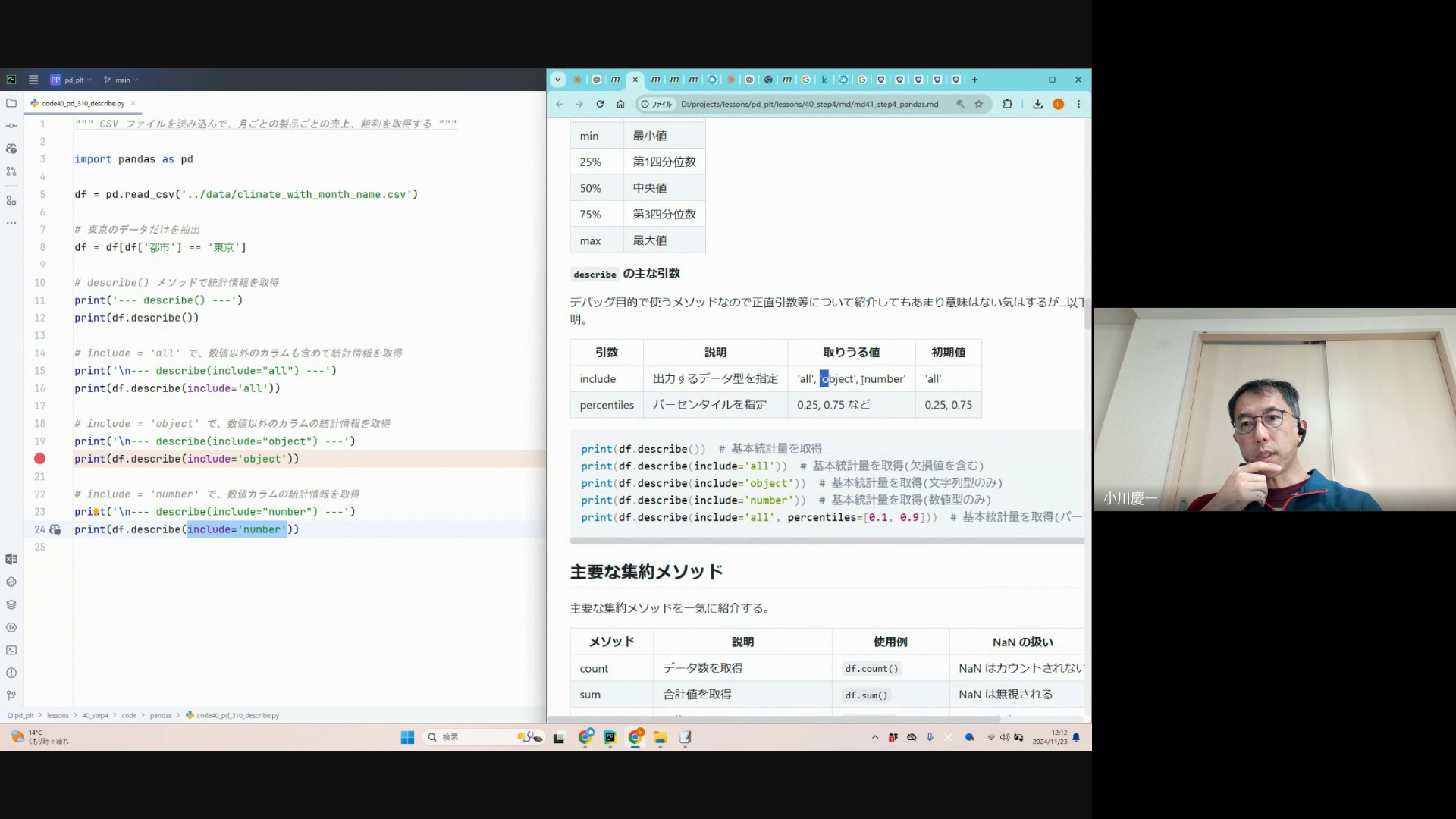 また、 describe メソッドで得られる集計データをほかのメソッドで取得する方法について。