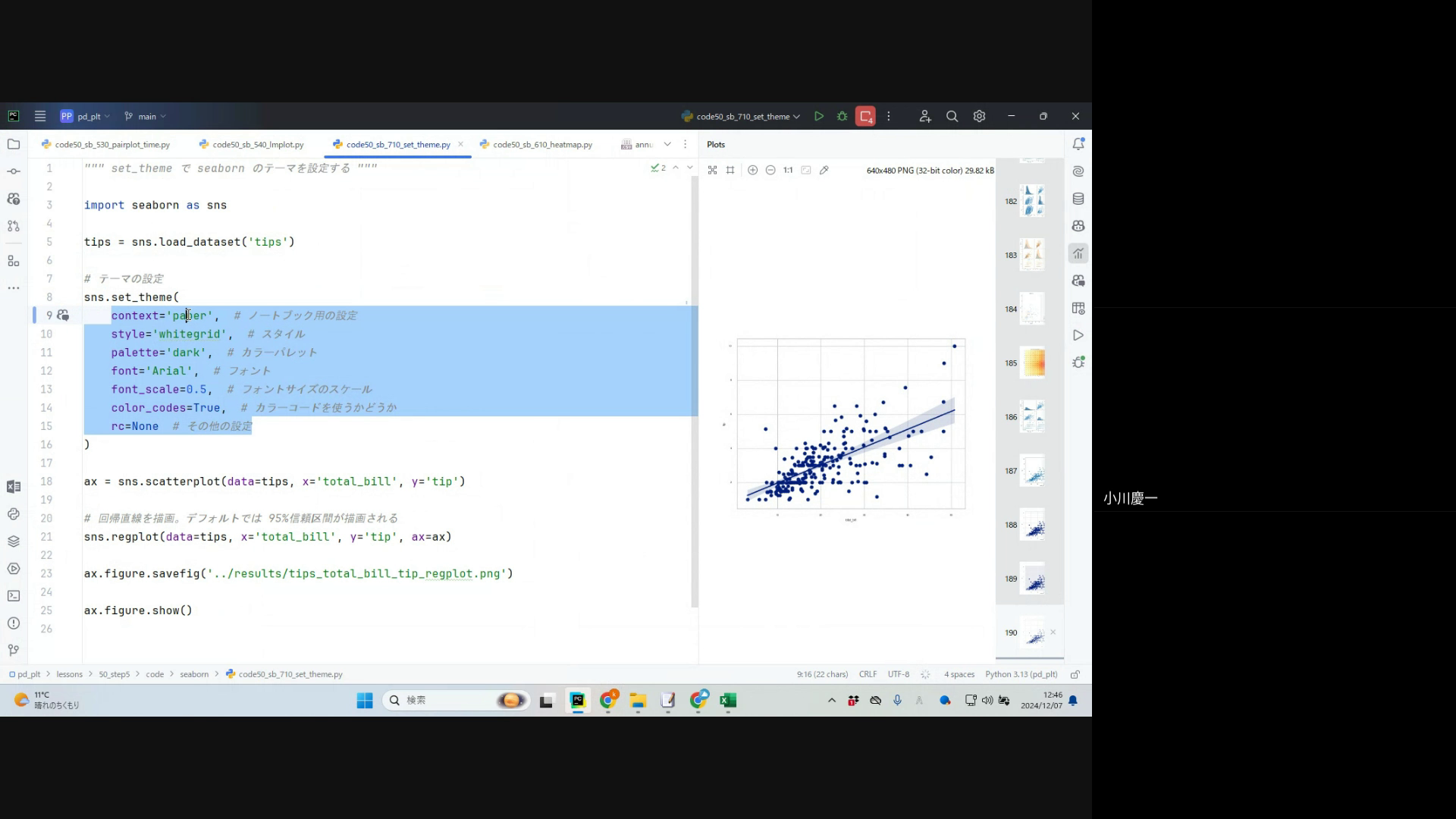 この動画では、seabornで利用できるサンプルデータセットについても紹介しています。