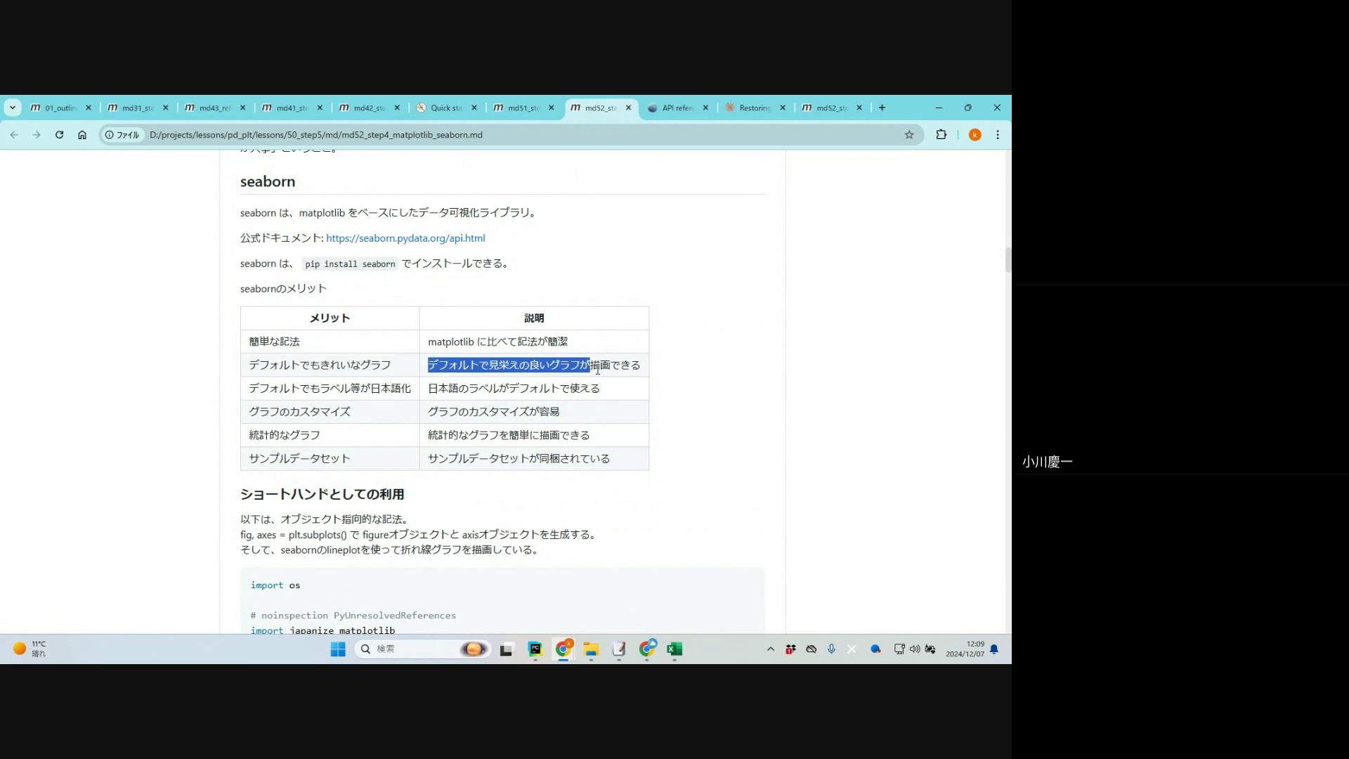 どのようなライブラリなのか、seabornを使うことには、どんなメリットがあるのか等。
