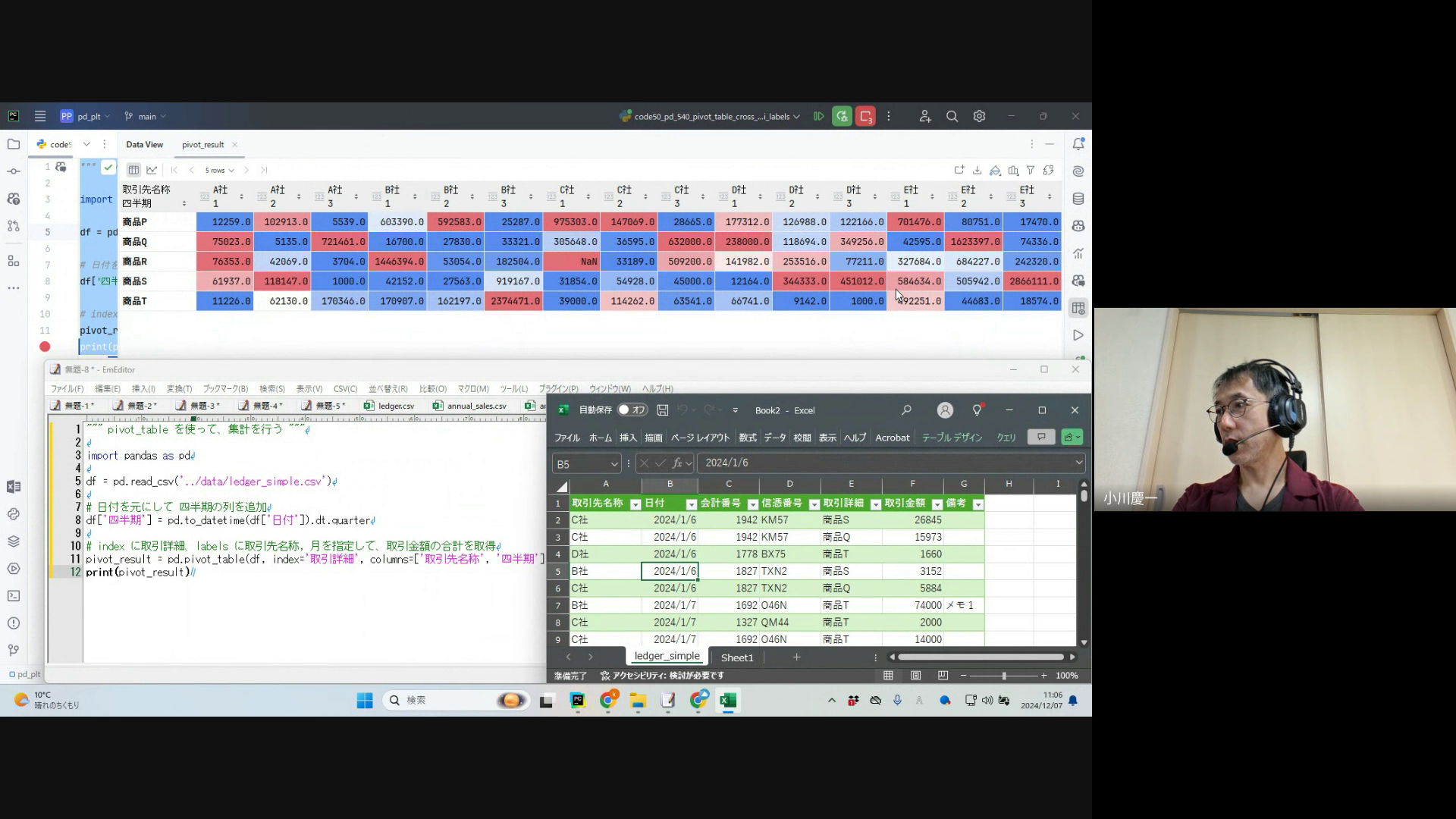 エクセルのピボットテーブルと集計結果を比較しつつ見ていきましょう。