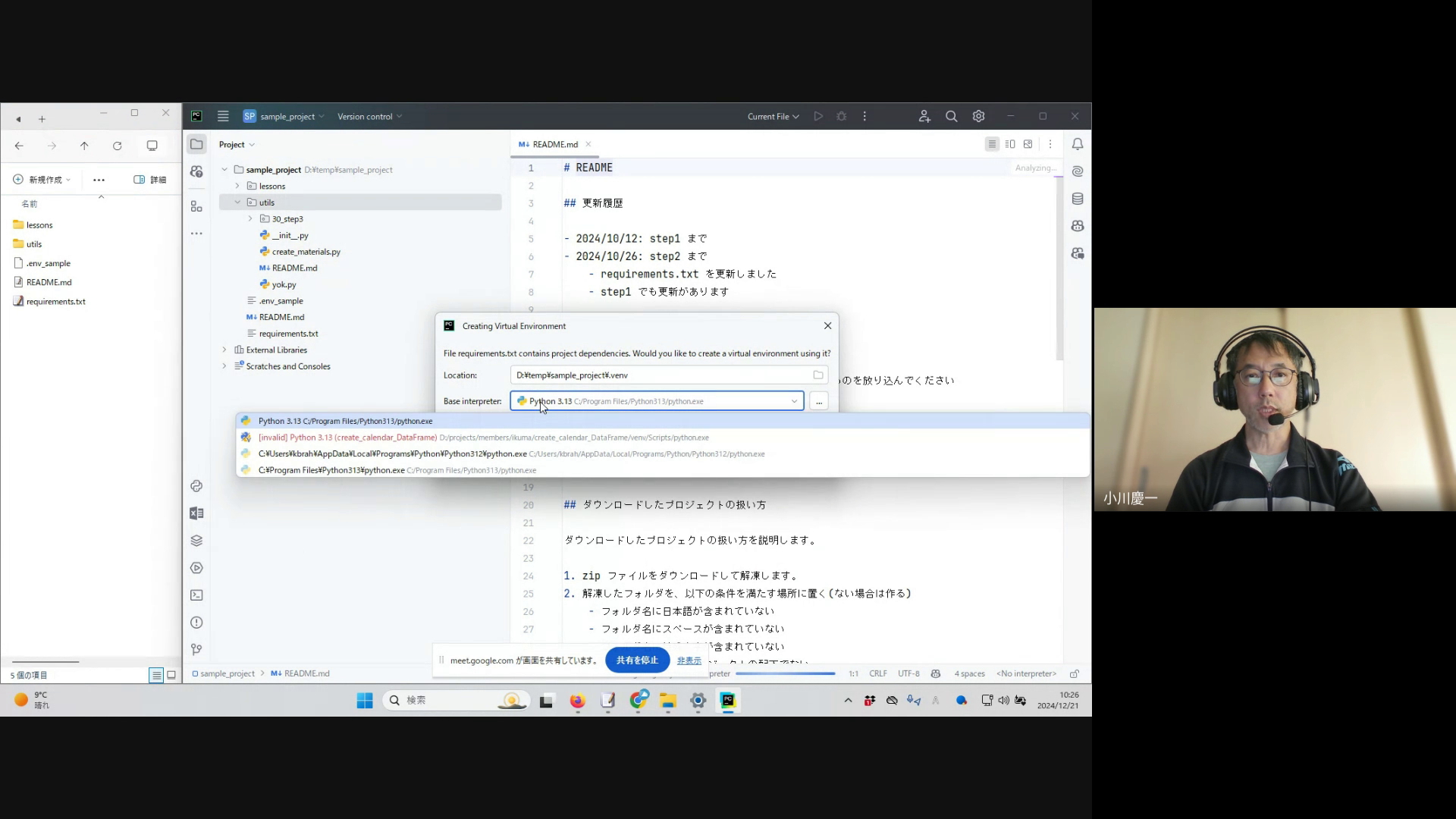 サンプルデータのダウンロードからPyCharmのセットアップまでの流れについて改めて解説しています。