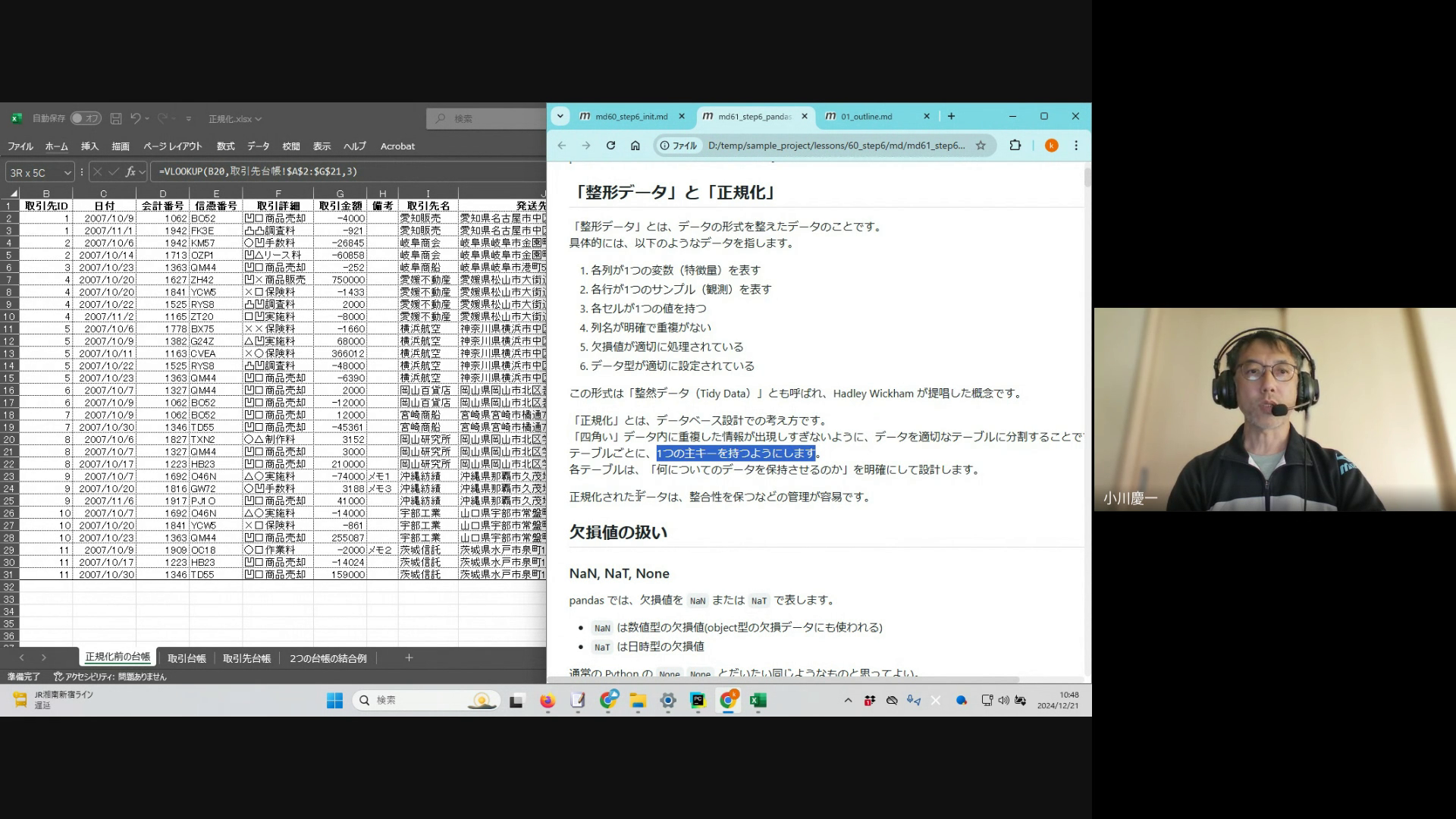 また、「整形データ」、「表の正規化」について。