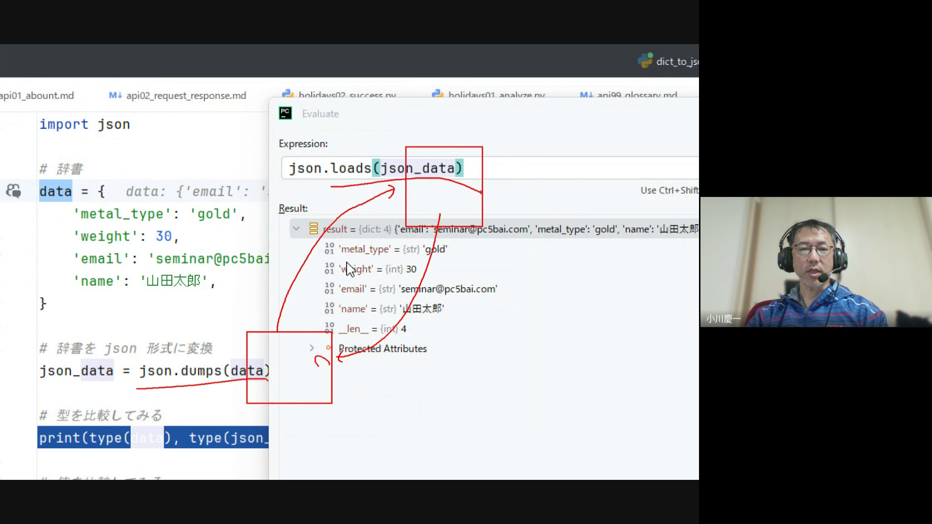 JSON形式のデータはテキストです。テキストとして辞書のような形式のデータを表現しています。