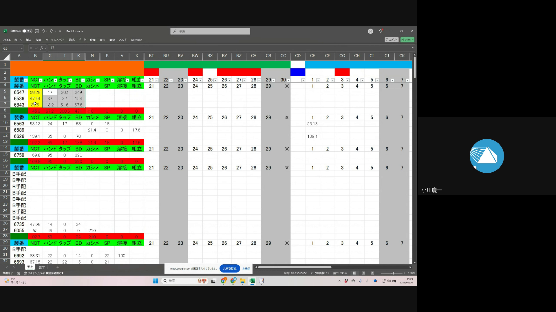 工程管理表についてのご相談について、いただいたエクセルファイルを拝見しつつ、どのような目的で作られている資料なのかといったことについてお聞きしています。
