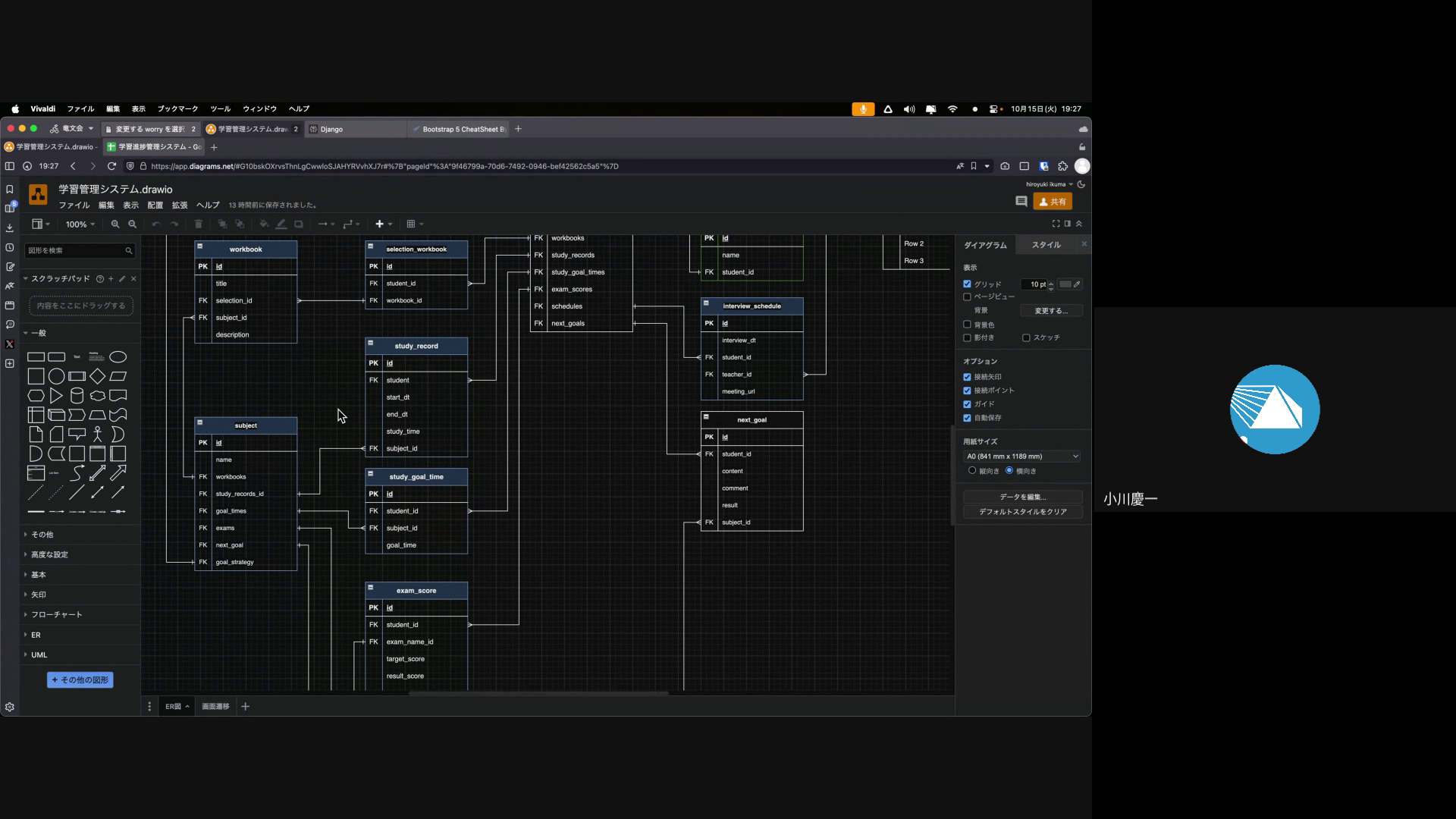 ER図など。僕はなるべくこういうものは作らないように仕事を進めるようにしています。