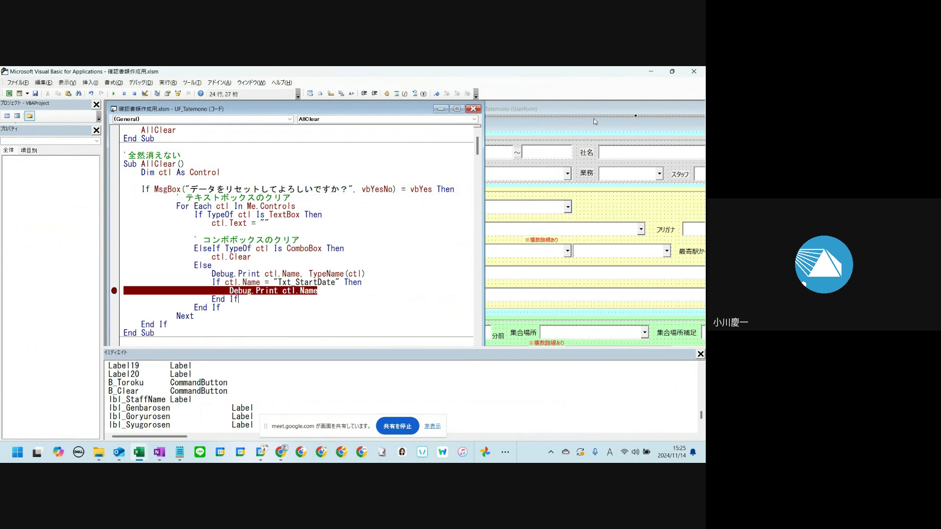 フォームに表示されるデータのclearがうまくいかないということで、受講生さんと探ってみました。