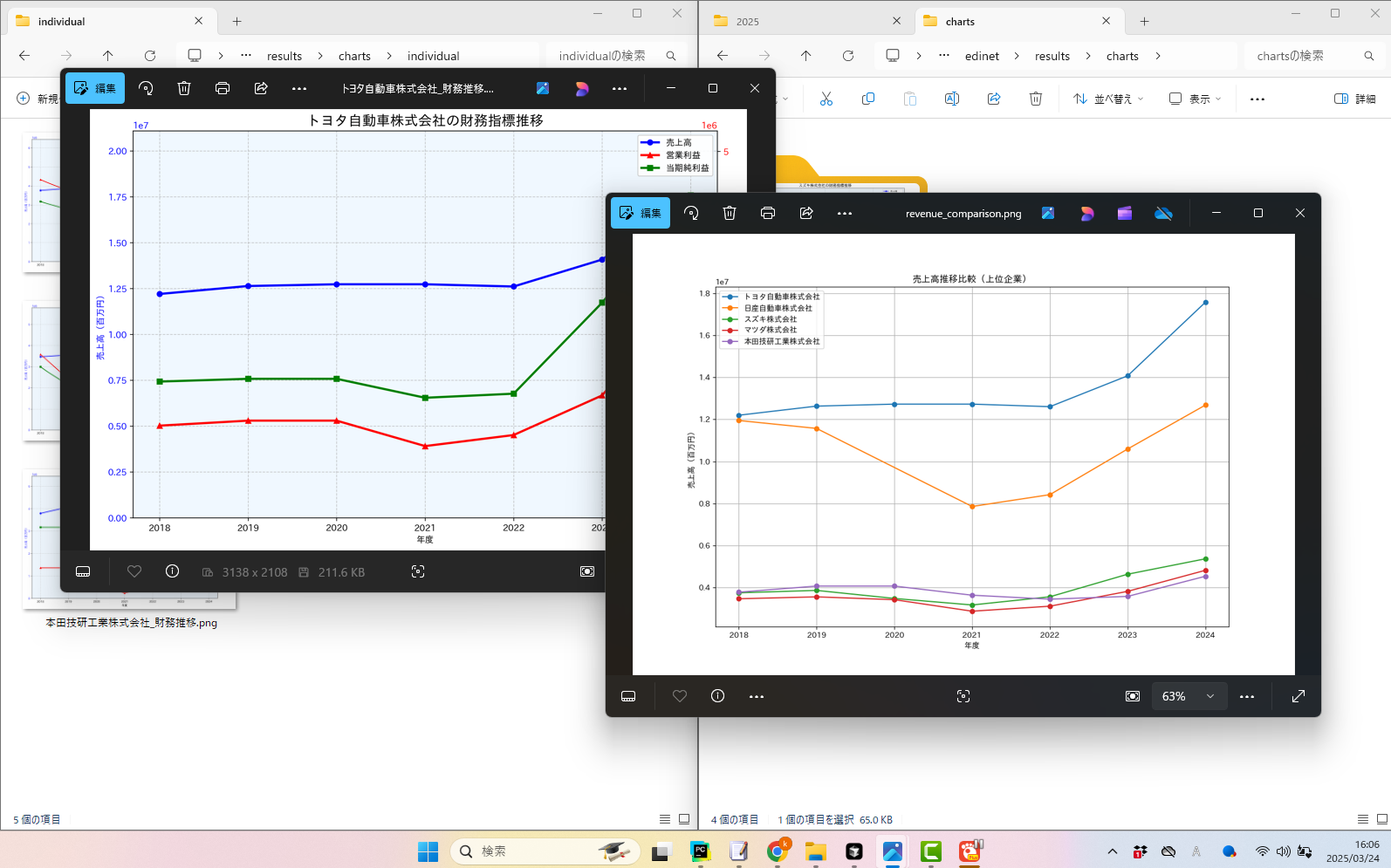個々の企業についてのグラフを作りそして、5社の比較のグラフも作ります。