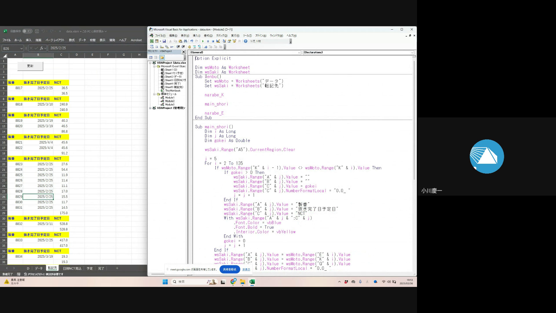 典型的な、エクセルマクロ講座「発展編1」でお伝えしている「伝票作成マクロ」の応用パターンです。